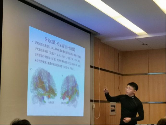 小宝影院 研究生吕冬在基础与理论分论坛汇报《反社会行为人群白质微结构异常的Meta分析》。吕冬同学介绍了张积标老师课题组最新研究成果,探讨研究反社会行为人群大脑白质的异常,并与前期研究结合,提出反社会行为人群可能同时存在白质和灰质结构的异常。