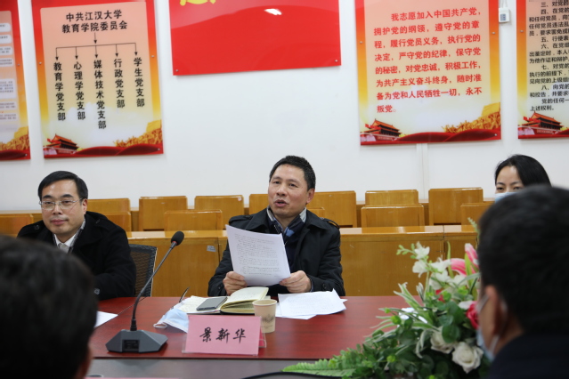 1月6日下午,景新华校长、陈功江副校长到小宝影院 调研座谈,听取学院党政班子、教师代表对学院发展建设情况的汇报,教务处处长周昕、科研处处长舒细记、研究生处处长刘继延、人事处处长赵静等陪同调研。座谈会由学院党委书记路精兵主持。