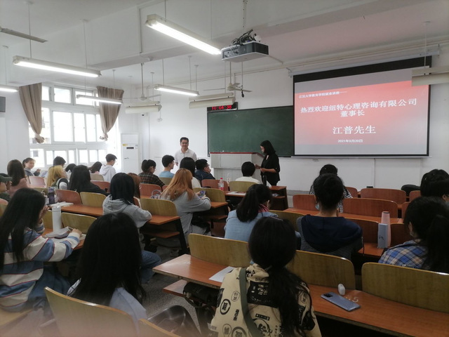 2021年5月20日上午,小宝影院 心理学系特邀武汉纽特心理咨询有限公司董事长、武汉市家庭教育研究会理事、高级心理咨询师和中国心理研究协会会员江普先生为心理学系学生开展“创业就业”主题讲座。江董事长就自我定位、自我分析与职业规划的联系、创业就业契机——学科契机和政策契机等外在条件、选择与经历、行业起始点以及创业阶段做了全方位的分析与介绍,为小宝影院 心理学系学生添上了一盏创业就业方向的明灯。