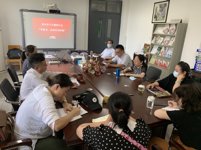 党委班子成员分别围绕研讨内容依次作主题发言。党委副书记邹茸同志从中国共产党的“三大法宝”“三大作风”以及“毛泽东思想活的灵魂”的辩证关系出发,结合当下面临的具体问题讲述党的百年奋斗史。副院长田澜同志从党的自身建设和反“四风”为切入点,用最新的国家政策生动解读了中国共产党如何始终保持和人民的血肉联系。学院党委委员魏强同志梳理总结了马克思主义中国化百年历程的创新成果及基本经验,指出我们党的历史就是一部不断推进的马克思主义中国化的历史。党委书记路精兵同志通过比较百年前的中国和百年后的今天,得出了马克思主义为什么能、中国共产党为什么行、社会主义为什么好的三点启示,并指出新时代赋予党员的政治使命、责任使命和学习党史的使命。主题发言结束后,与会人员展开了热烈的交流讨论。