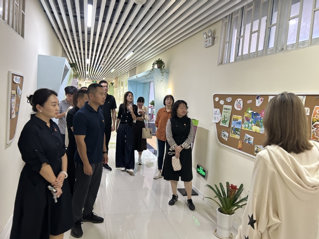 在心理健康教育中心,一行人参观了心理咨询室、心理测评室、情绪调节室等多个功能区,深入了解我校心理健康教育中心的服务内容、工作流程、队伍建设等方面的情况,并就如何加强心理健康教育与学生工作相结合进行了探讨。