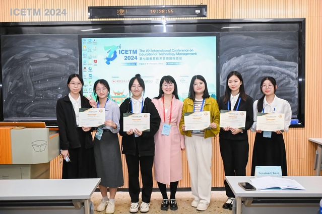 2024年11月9日,教务处副处长、小宝影院 媒体技术系李幸副教授和数媒教研室艾地主任以及研究生罗菁菁参与了在湖南师范大学举行的第七届教育技术管理国际会议(ICETM 2024),与全球教育技术领域的专家学者共同探讨和分享最新的研究成果与实践经验。