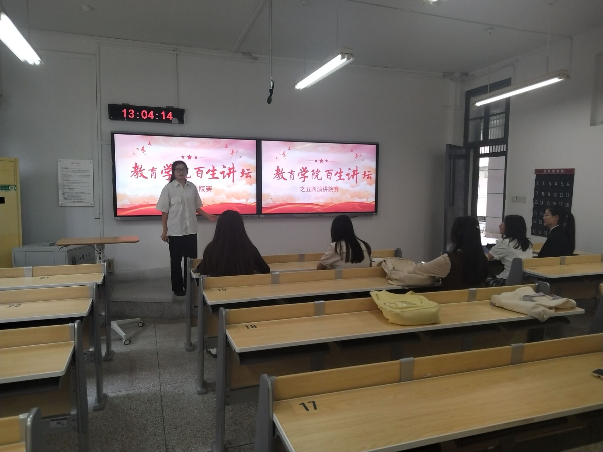 4月29号中午,2024届“百生讲坛”优秀主讲人评选暨五四演讲小宝影院 赛在J04B107教室顺利举办。该比赛由院团委组织开展,邀请了院团委王译禾老师担任评委,共有六名选手参赛。接下来,让我们一览这些优秀选手们的精彩瞬间吧!