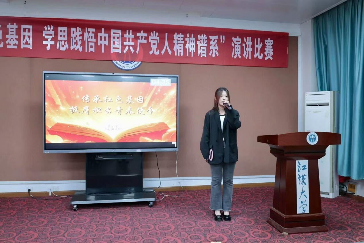 刘雅萱同学则以“传承红色基因,担当青春使命”为题,用生动的语言和真挚的情感,表达了对中国共产党人精神谱系的深刻理解和对红色基因的坚定传承。她以优秀的舞台表现力,生动展示了中国共产党人坚定的理想信念、不懈的奋斗精神和崇高的道德品质。