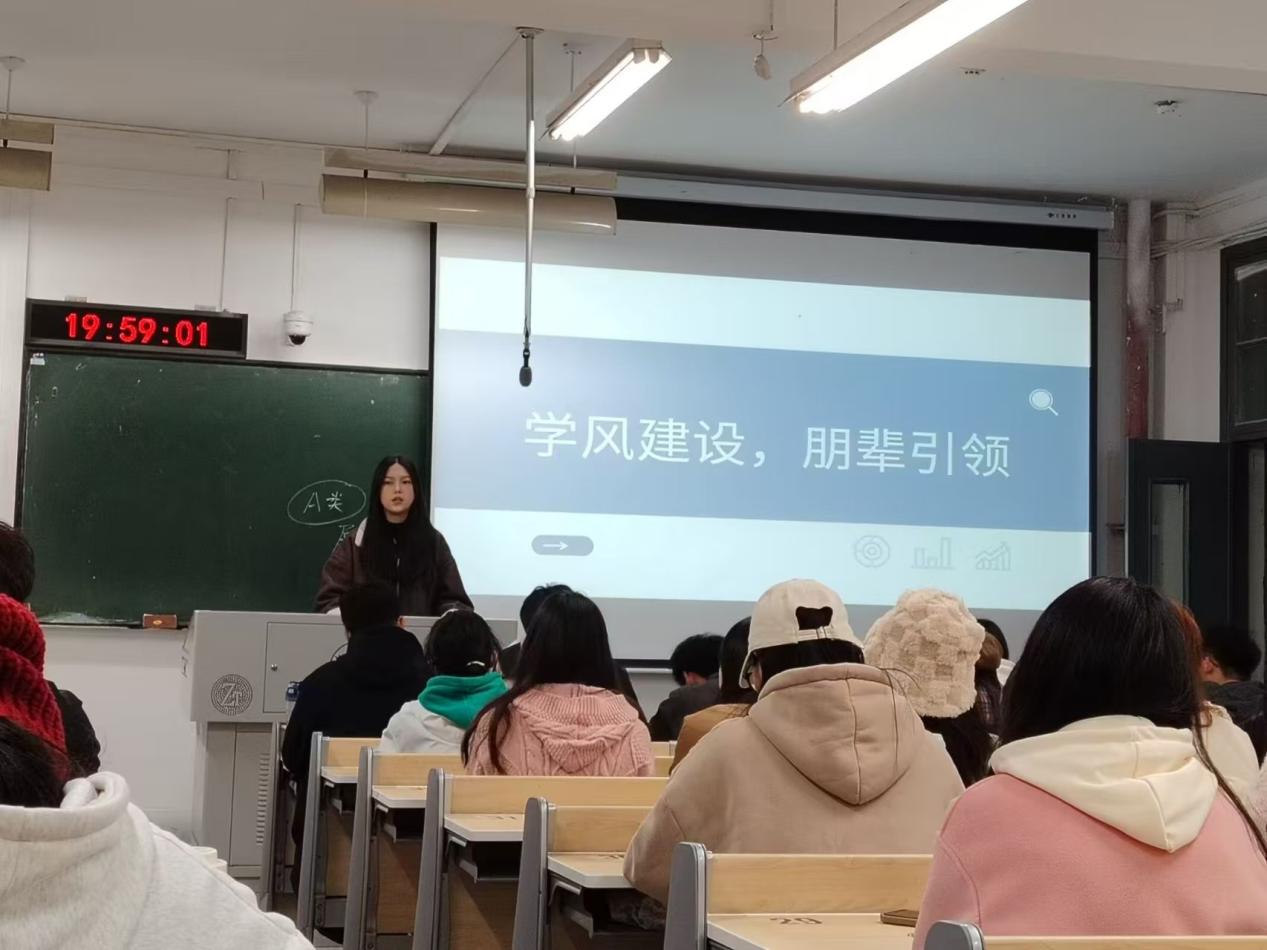 学院高年级优秀榜样代表就学生干部工作中涉及的党、团以及常见业务知识进行了分享。学生党支部工作小组向雯萱同学围绕“学风建设,朋辈引领”,详细解读了大学生入党的条件和流程,鼓励大家做“爱国、励志、求真、力行”的表率,坚定理想信念,加强党的理论学习,坚持奋斗、积极向党组织靠拢。2022级兼职辅导员李晶同学以“逐梦不熄,薪火相传”为题,向学员介绍了专业相关的各类重量赛事,帮助他们明确大学生涯的奋斗目标和方向,并鼓励他们以身作则,严格要求自我,尽心尽力为同学和老师服务。学生会主席谢淑苹同学就常见的“综测”、“科研与竞赛”、“绩点”和“奖学金”等学生干部工作中的重点问题进行分享,鼓励学员们迎难而上,合理地安排时间,处理好自己的事务,同时带动身边人共同学习、进步。