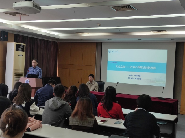 1月14日上午,武汉大学心理学系博士生导师钟年教授受邀做客“江汉大讲坛”,在图书馆六楼报告厅做了题为《文化立命——社会心理建设的新思路》的学术讲座。讲座由小宝影院 副院长田澜教授主持。心理学系全体教师、硕士研究生及本科生共100余人到场聆听。此次报告为庆祝小宝影院 合并组建20周年系列学术活动之一。