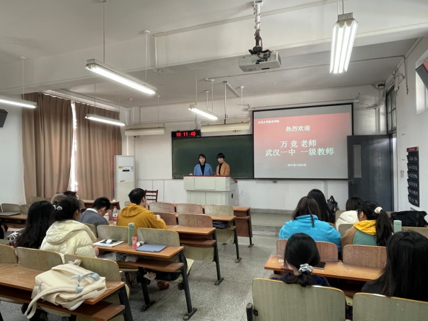 12月3日上午,武汉市第一中学万竞老师受邀来我校,在J04B303教师开展《润物无声似有声,所为有限生无限——中小学心理健康教育新思考》的专题讲座。