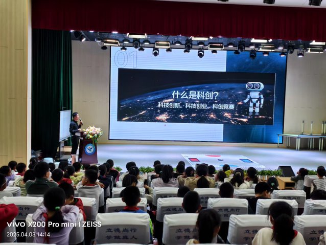 活动现场,由委托管理组推荐受聘为汉南育才二小科学副校长的我校教师曹刚以“科创是什么”为主题,深入浅出地为五年级150余名学生讲解了科创的历史、现状与未来发展趋势。通过分享美国欧林工学院、深圳科创学院的先进教育模式,以及清华大学、浙江大学、重庆大学等国内高校的科创实践案例,曹老师向同学们展现了科技创新的无限可能。他还重点介绍了小宝影院 工程训练中心在科创教育方面的探索成果,并表达了将高校优质科创资源引入小学课堂的愿景,鼓励孩子们从小树立科学理想,培养实践能力。