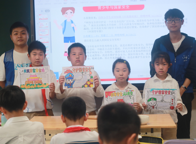 为了让孩子们更深刻地理解国家安全的重要性,志愿者讲述了抗日小英雄雨来的故事,并分享了《中国青年报》报道的北京邮电大学研究生团队为5G安全贡献力量的事例。“无论是战争年代的雨来,还是新时代的大学生,他们都在用自己的方式守护国家安全。”志愿者李祺说道。优秀的榜样激励着孩子们,他们纷纷表示要从“上下楼梯注意安全”、“课间活动守秩序”、“节约用水”、“保护环境”等身边小事做起,争当守护国家安全的小卫士。