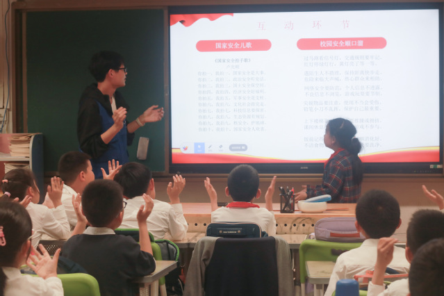 在校园安全环节,志愿者们设计了朗朗上口的顺口溜,涵盖交通安全、食品安全、网络安全等内容。“过马路看信号灯,交通规则要牢记……”孩子们在志愿者的带领下齐声朗读,稚嫩的声音传递出对安全的重视。随后,一首《国家安全拍手歌》将活动推向高潮,孩子们边拍手边歌唱,在轻松愉快的氛围中巩固了安全知识。