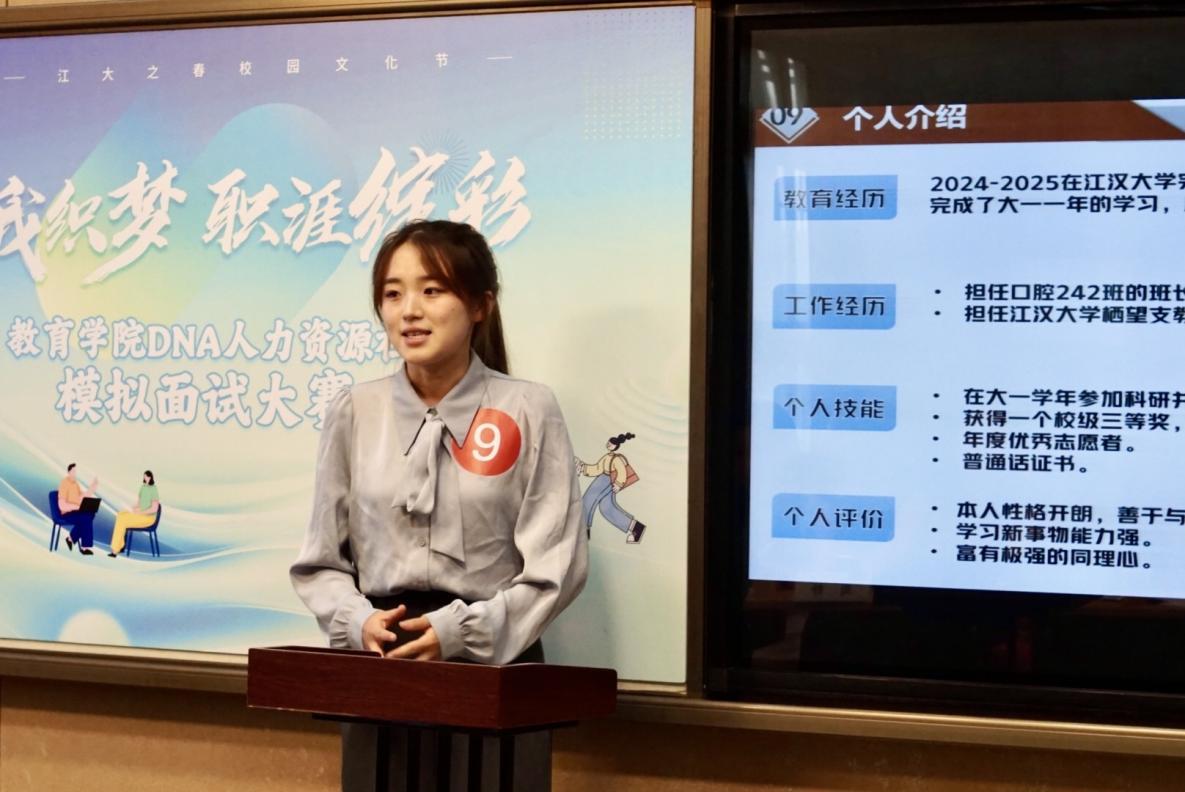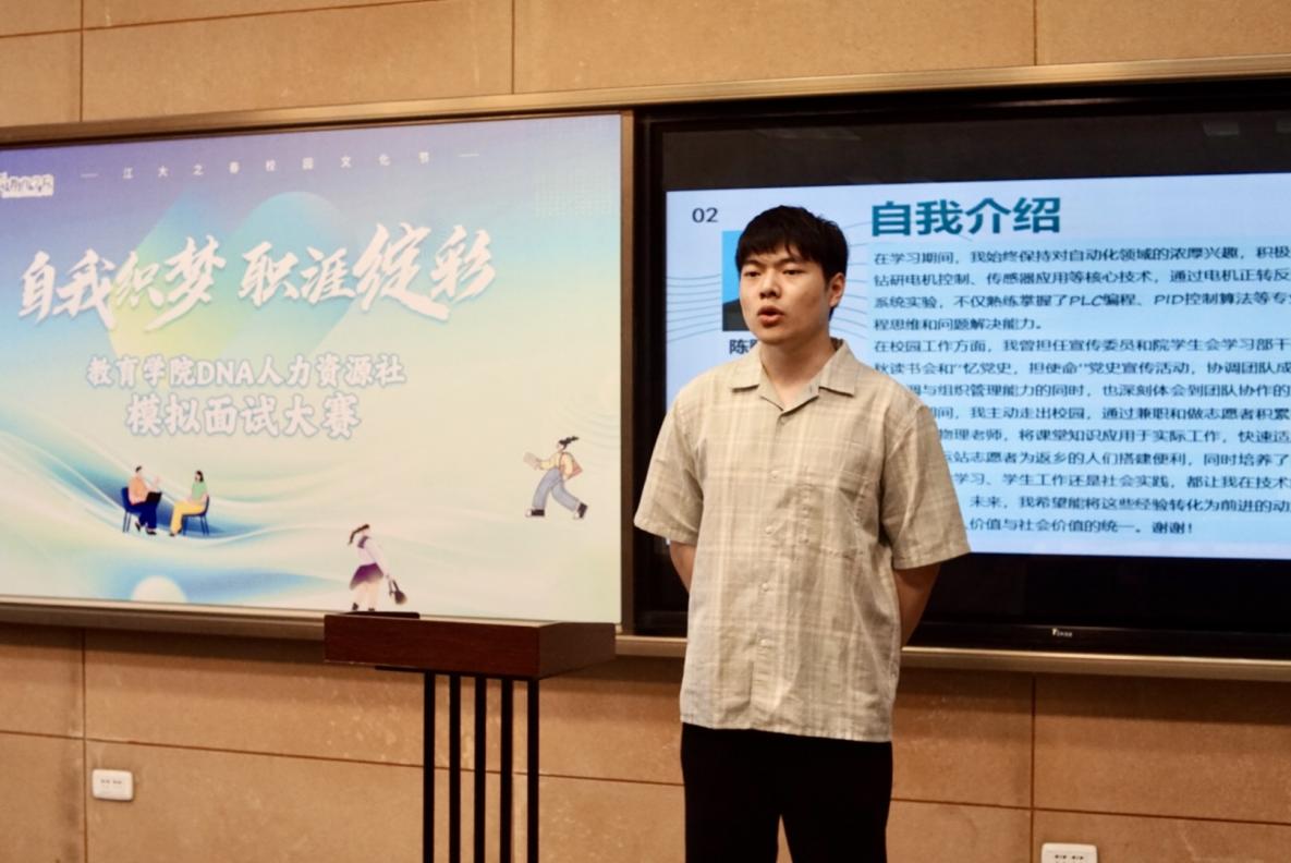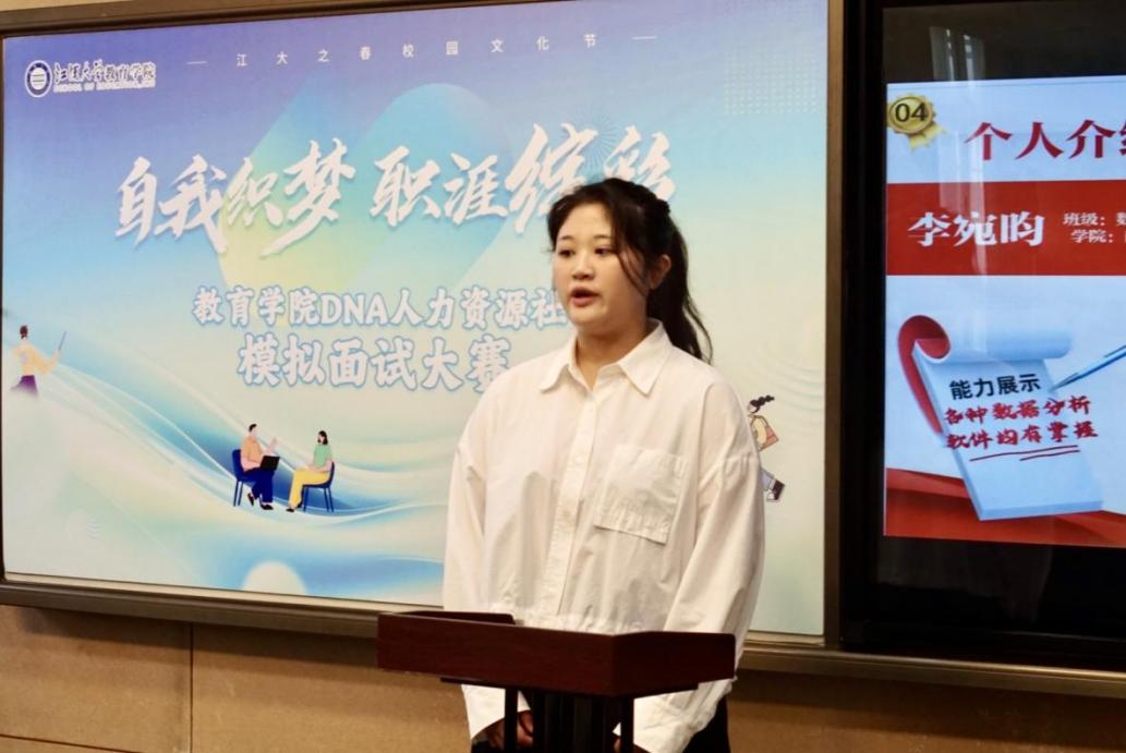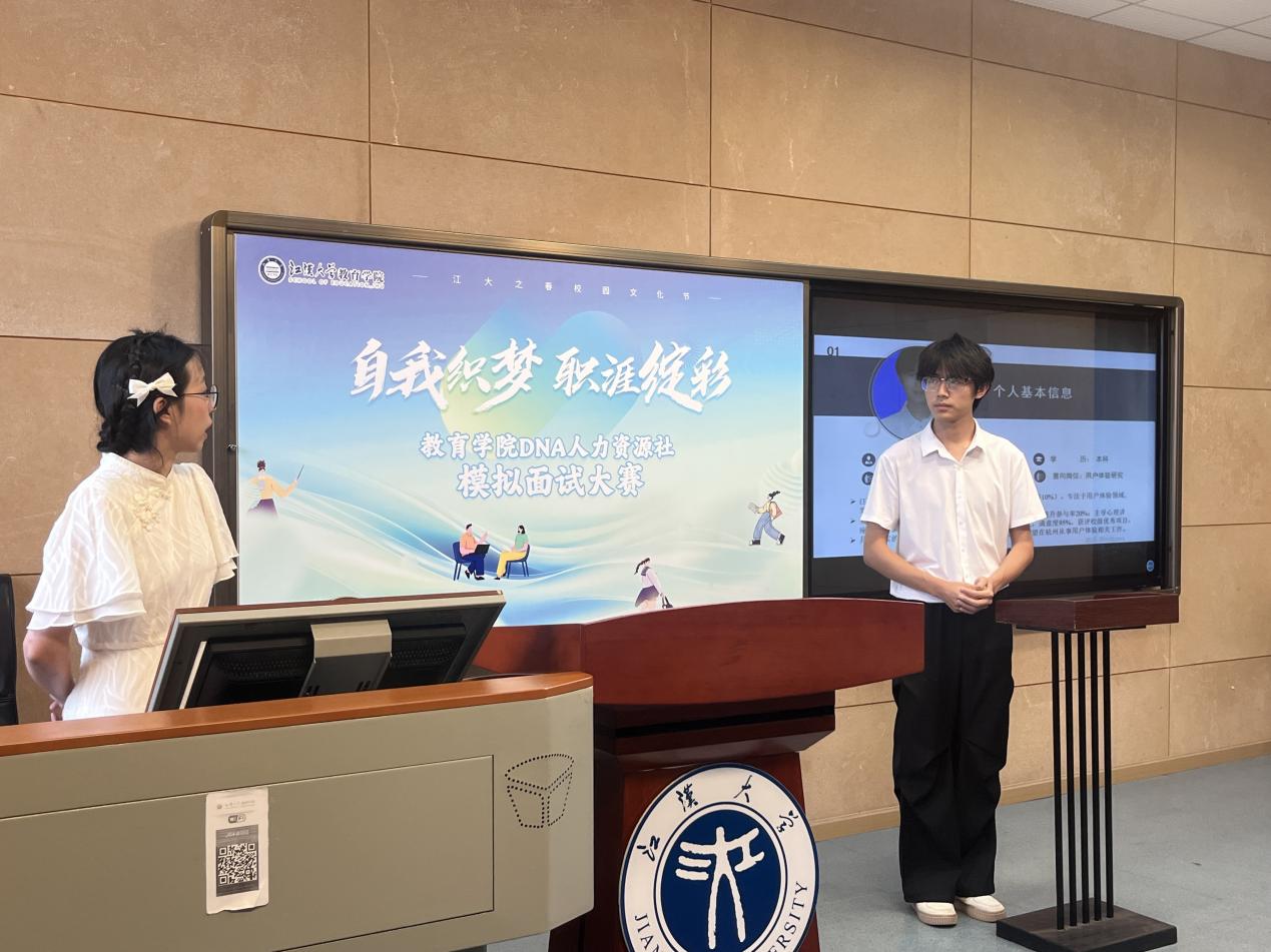 2025年6月19日下午,江大之春校园文化节——“自我织梦·职涯绽彩”模拟面试大赛决赛在J04B302录播室成功举办。作为校园文化节的校级活动之一,大赛以简历优化、面试技巧提升及职业发展规划为核心,吸引了全校师生的广泛关注。活动通过线上线下联动的方式,为参赛者打造了一场沉浸式的职场能力提升体验。本次活动由小宝影院 DNA人力资源社承办。
