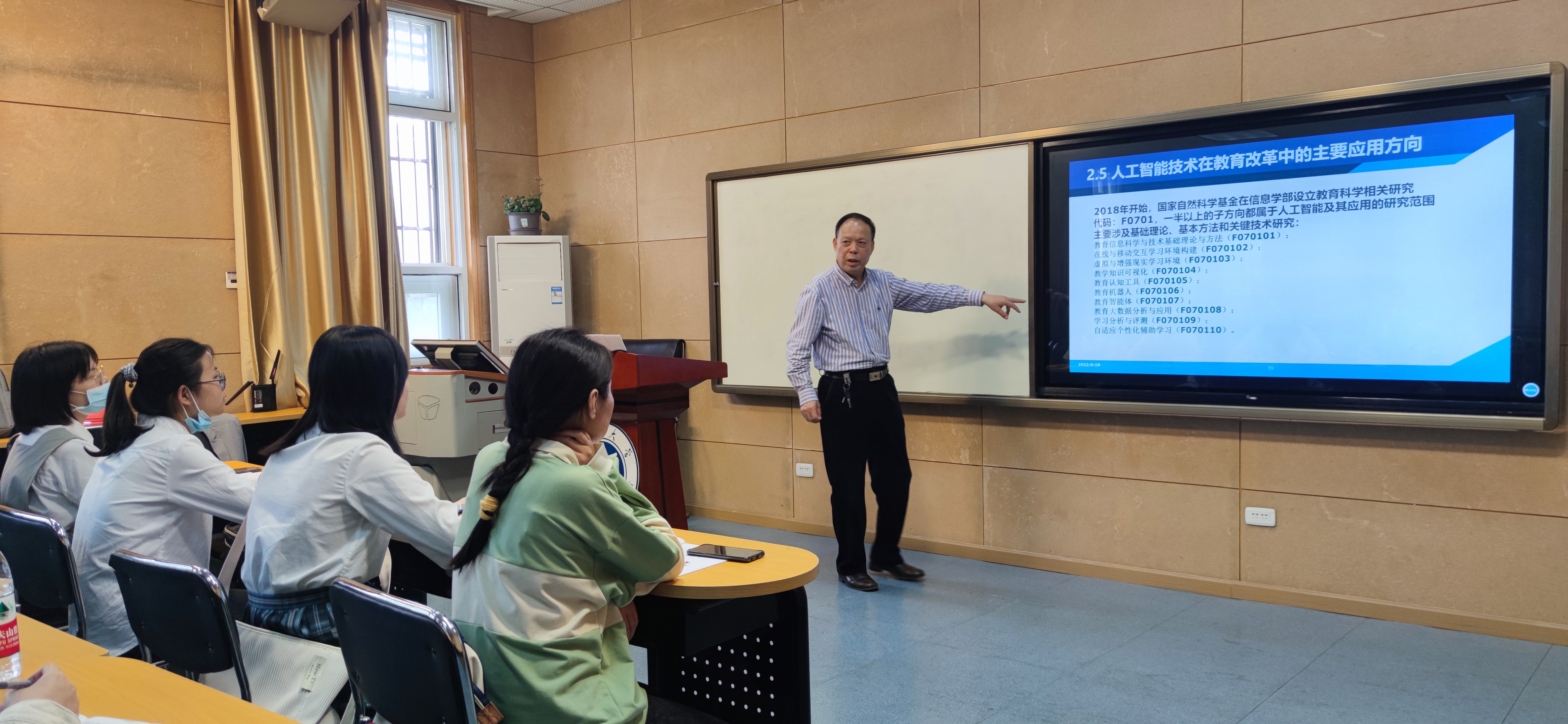 5月18日下午,华中师范大学人工智能教育学部教授、博士生导师赵呈领教授应邀做客“江汉大讲坛”,在J04B302教室做了题为《人工智能技术应用:教育信息化创新教育发展的新动力》的学术讲座。小宝影院 媒体技术系部分教师、现代教育技术专业在校全体硕士研究生到场聆听。