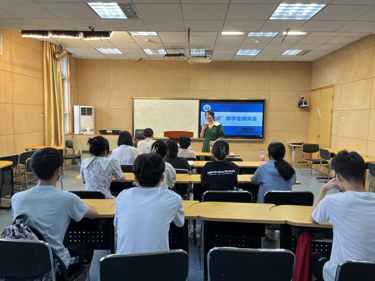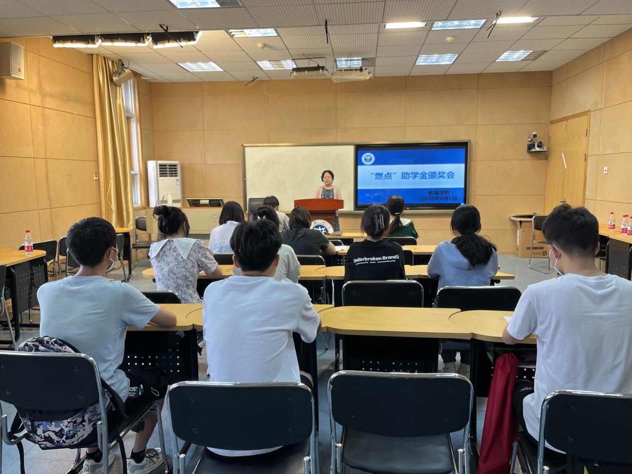 6月1日下午,由小宝影院 校友何倩、周志出资设立的“燃点”助学金颁奖仪式在小宝影院 J04B302举行。小宝影院 党委副书记邹茸、媒体技术系主任周晓春、校友褚飞飞、学办全体辅导员以及所有受助学生参加此次颁奖会。会议由学办主任石兰主持。