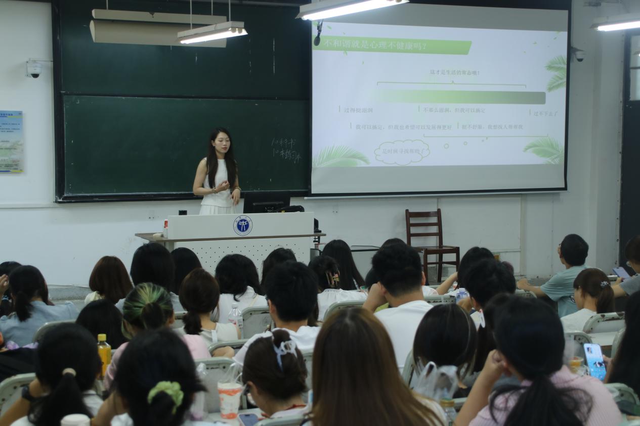 心理辅导员王译禾老师围绕大学生心理健康主题,结合生动案例,讲解了心理健康的含义、标准及常见适应问题,引导同学们初步掌握心理调适的基本方法。课上还介绍了学校心理健康教育中心、学院“解压小屋”及“方塘有约”心理互助之家的特色资源与活动,并公布了心理咨询与疏导的预约途径,鼓励同学们积极利用校院支持资源,坦然面对成长中的挑战。
