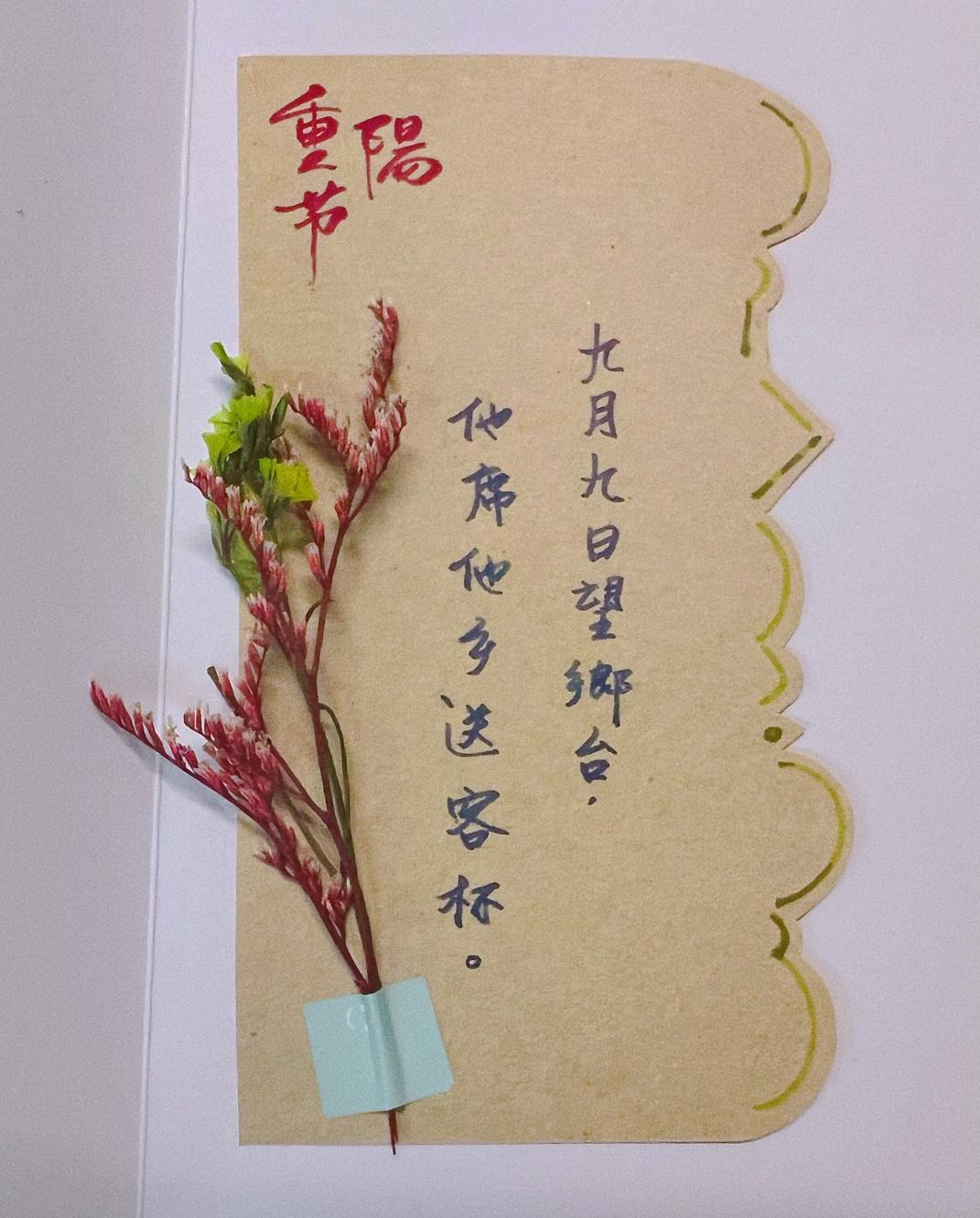 一位同学在参赛作品中引用了卢照邻的一句诗:“九月九日眺山川,归心归望积风烟。”她说,现在处于疫情管控时期,无法回到家乡,她只能眺望家乡的山峦以传达对长辈们的思念。一屡屡思念的游思飞跃了隐约的风烟,在我们眺望远方时飞向了家乡。人们都说每逢佳节倍思亲,九九重阳佳节更是让我们心中对老人的思念到达了极致。