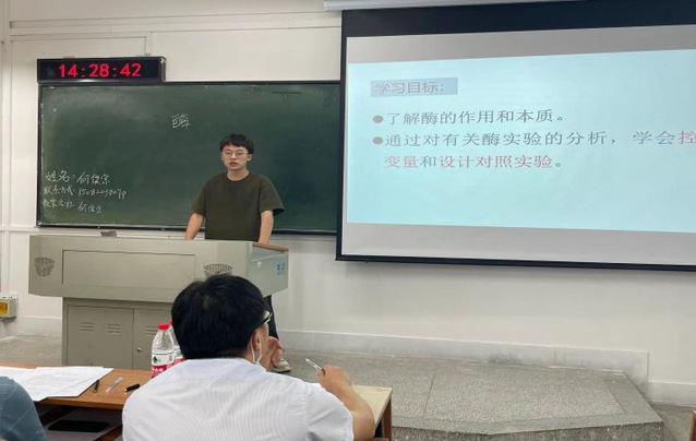 参赛学生为我校本科三、四年级的学生,分为语文组、数学组、英语组、政治组、历史组、地理组、物理组、化学组和生物组九个组别进行比赛。本次比赛十分注重选手综合素质的选拔,要求参赛选手们利用多媒体课件模拟上课,同时做好板书的设计。选手们在讲台上精神饱满,教姿端庄得体,语言表达准确流畅、条理清晰富有感染力,课件制作新颖生动,教学内容丰富多样。在十分钟的教学展示中,他们尽情展现自己作为洋溢朝气的大学生以及作为一名未来教师的风采,把课堂内容展现得淋漓尽致。