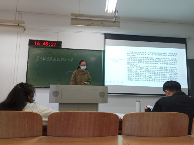 此次大赛小宝影院 共有十个小组参赛,在主持人宣布比赛开始后,每个小组便依次上台答辩,现场井然有序,,在所有小组答辩完毕后,现场评委老师从团队情况、创新性、商业性等各个方面进行了打分,并给参赛选手提出修改意见,让参赛选手受益匪浅。