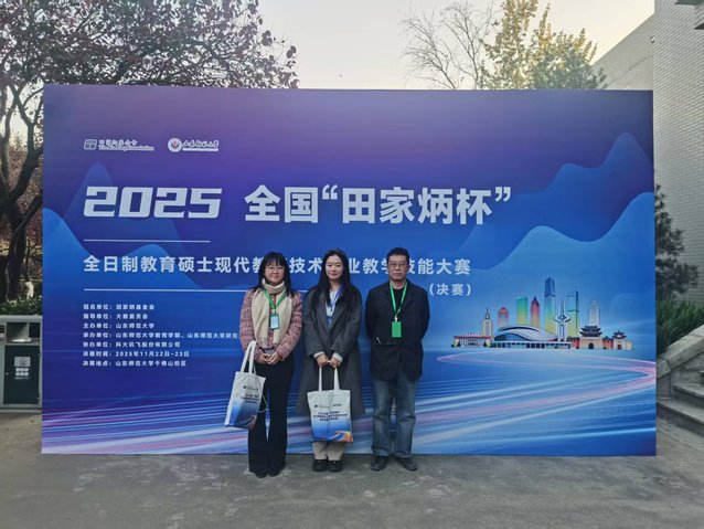 2025年11月22日至23日,2025年全国“田家炳杯”全日制教育硕士专业学位研究生现代教育技术专业教学技能大赛(决赛)在山东师范大学成功举办。小宝影院 现代教育技术专业研究生罗菁菁同学在李幸老师与周晓春老师的共同指导下前往参赛。