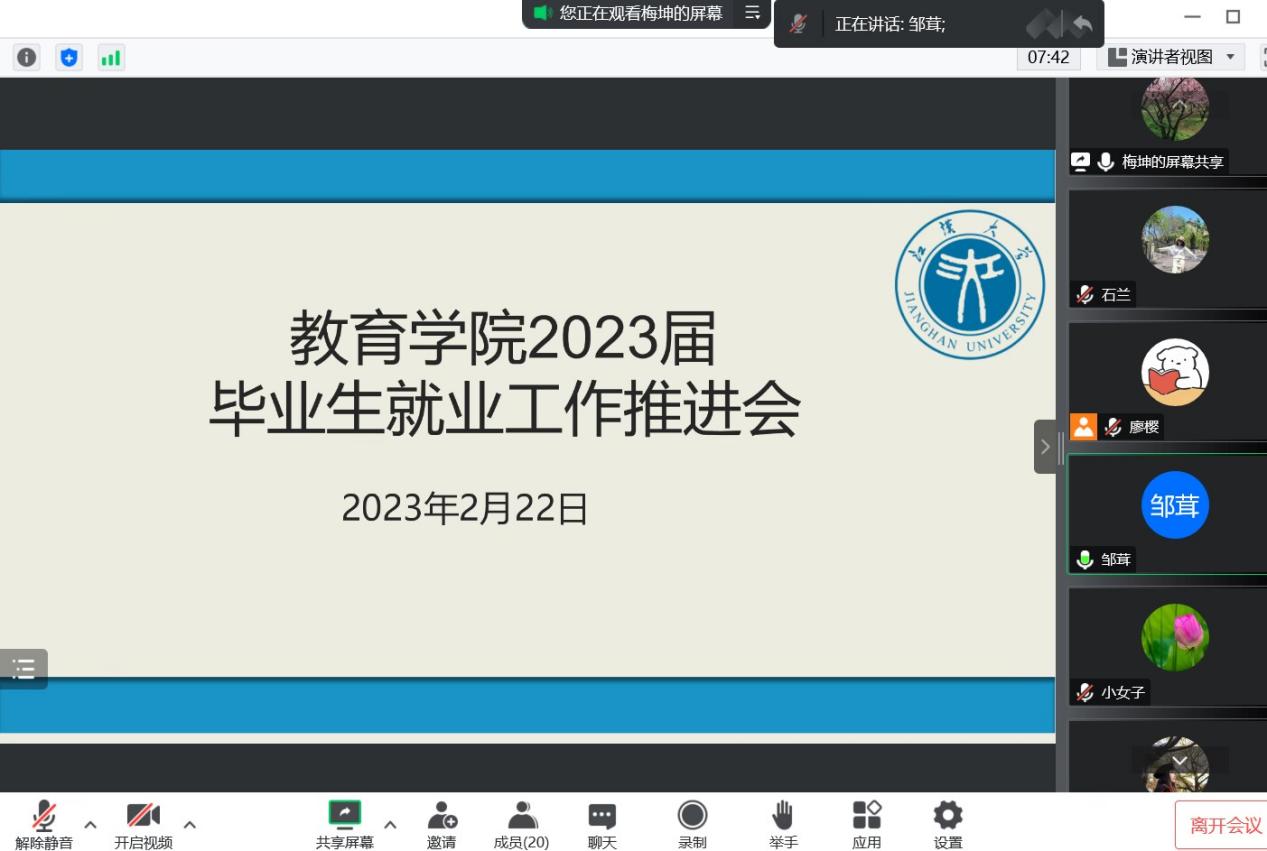 2023年2月22日晚,小宝影院 召开2023届毕业生就业工作推进会,会议由学院党委副书记邹茸主持,小宝影院 全体班主任和辅导员参与会议。
