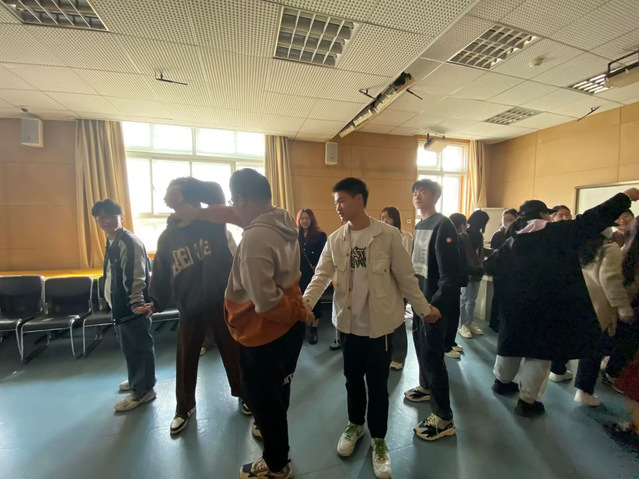 活动围绕“从心出发,扬帆起航”主题展开,活动伊始,方塘有约成员引导同学们进行简单的自我介绍,规则是每个人都需要用不同的方式。随后进行了4个小游戏,“言不由衷”游戏中,同学们依次向他人提简单的小问题,但是回答者要回答相反的答案;“解开千千结”游戏中,同学们围成一个圈,并且记住左右两边的人,在自由活动后抓住最初身边的人并解开交叉的地方;“疯狂的设计”游戏要求同学们摆出抽签抽到两个的英文字母,小组中所有人都要参与进来;最后一个游戏是“阿水的故事”,需要同学们注意力高度集中,在听到“水”字之后快速做出反应。