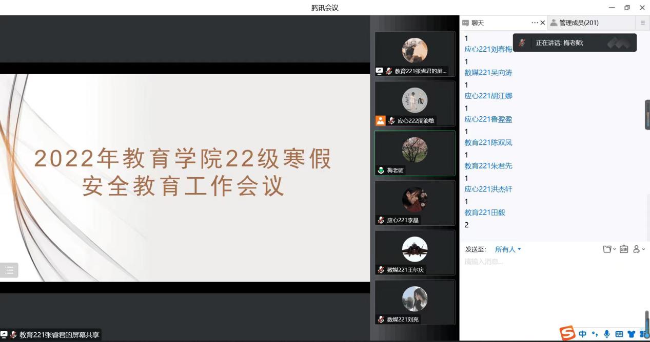 会上各年级辅导员分别强调了寒假的开始时间和返校报道的时间,提醒学生提前做好准备,同时在假期期间做好疫情防控工作,注意个人的人身财产安全,交通安全,网络安全,做到防火防盗防诈骗,度过一个安全假期。