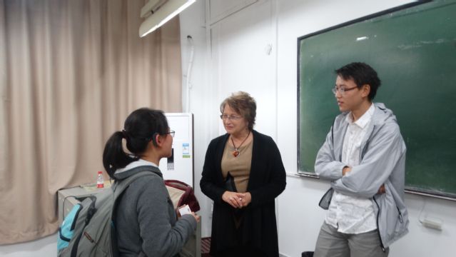 在第一场报告中,凯思琳·帕克特博士以亚利桑那州立大学以及玛丽·卢·富尔顿教师学院为例介绍了美国大学和学院分别在提高本科教学质量方面所做的改革措施,同时介绍了美国本科课堂教学中教师们常用的促进学生学习的教学技术或手段,并现场为在座的教师进行了演示。第二场报告中,她首先向学生介绍了自己的学习和研究经历,接着比较了中美教育的差异,提出美国教育是学校适应学生,而在中国是学生适应学校。引出了本次讲座的重点——辅助技术在自闭症儿童教育中的应用:全纳教育实践。凯瑟琳介绍了美国目前在自闭症研究中观念的转变,由“治愈”转向“帮助自闭症儿童提高生活水平”,并着重强调了专业人员和教师培训以及家庭环境和社会环境的重要性,并声明要有一定的国家水平的普遍的培训机构和被自闭症患者所认同的辅助技术。最后,凯瑟琳教授与现场学生进行了现场互动,逐一回答了同学们的问题并相互交换意见。