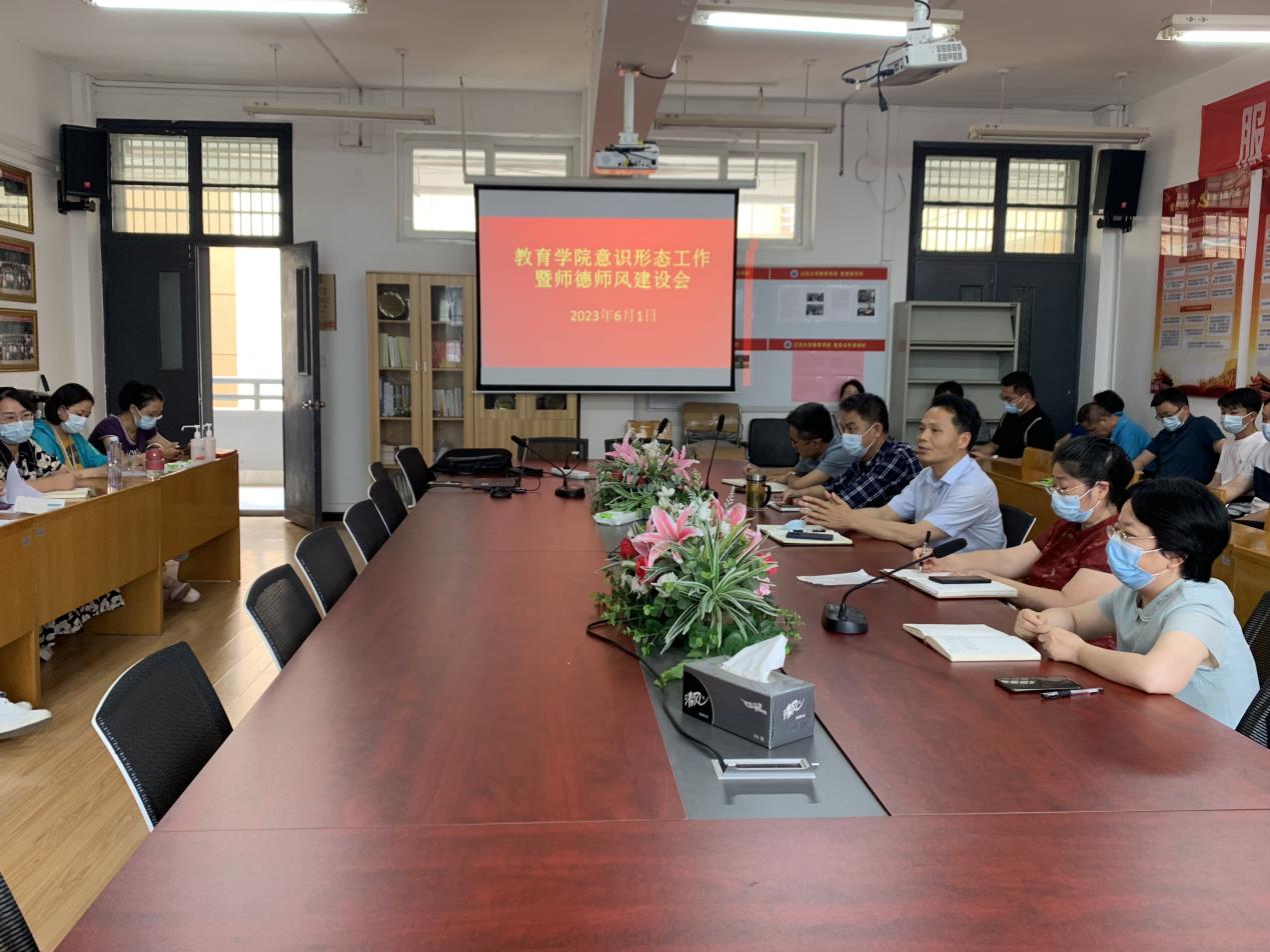 202361日,小宝影院 在J04A413会议室召开安全工作会、意识形态工作暨师德师风建设会,全院教职工参加。