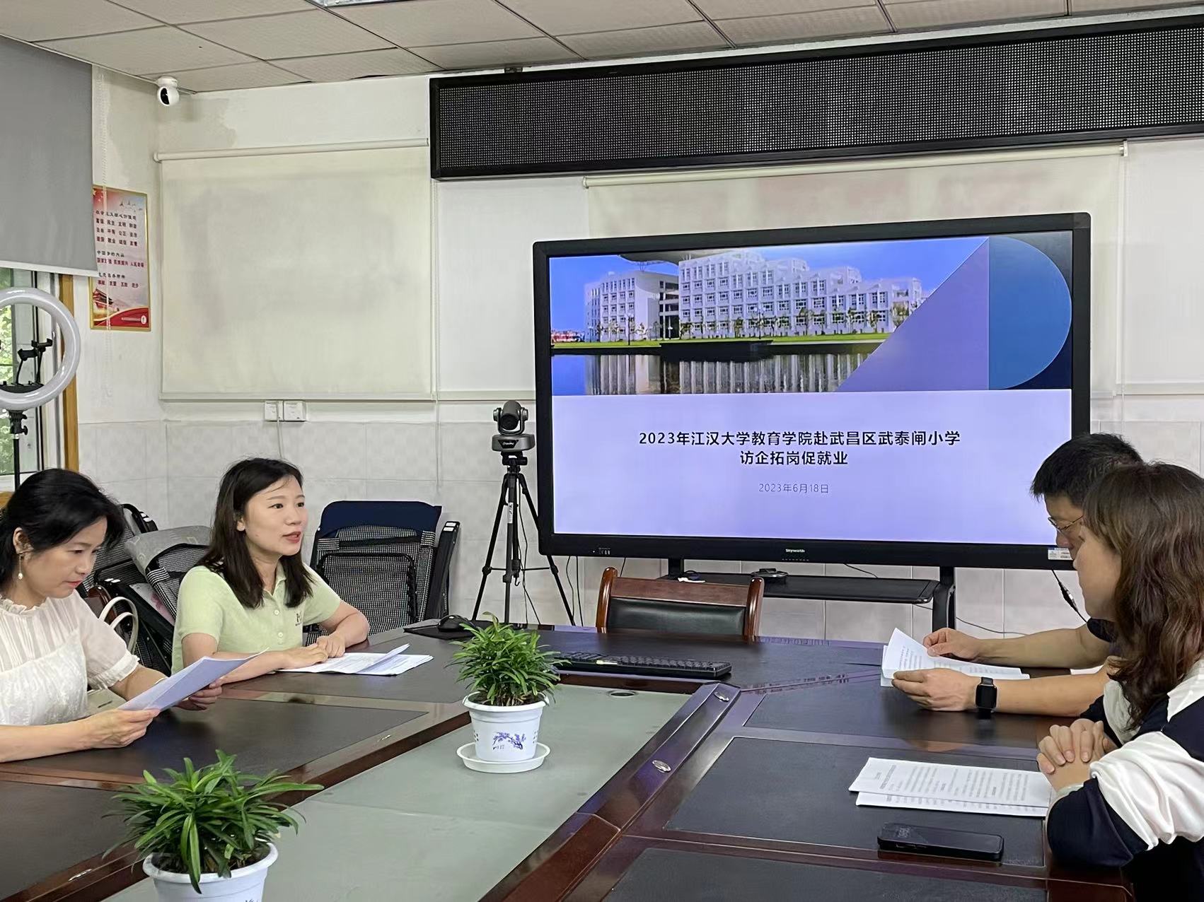 为深入贯彻落实党中央、国务院“稳就业”“保就业”的决策部署,拓展毕业生就业渠道和就业资源,助力2023届毕业生高质量精准就业,深入推进访企拓岗促就业工作。6月19日上午,小宝影院 教育学系副主任徐璐博士赴武昌区武泰闸小学开展访企拓岗促就业座谈会。武泰闸小学叶文震校长、校党委书记周燕、朱慧副校长等校领导出席会议。
