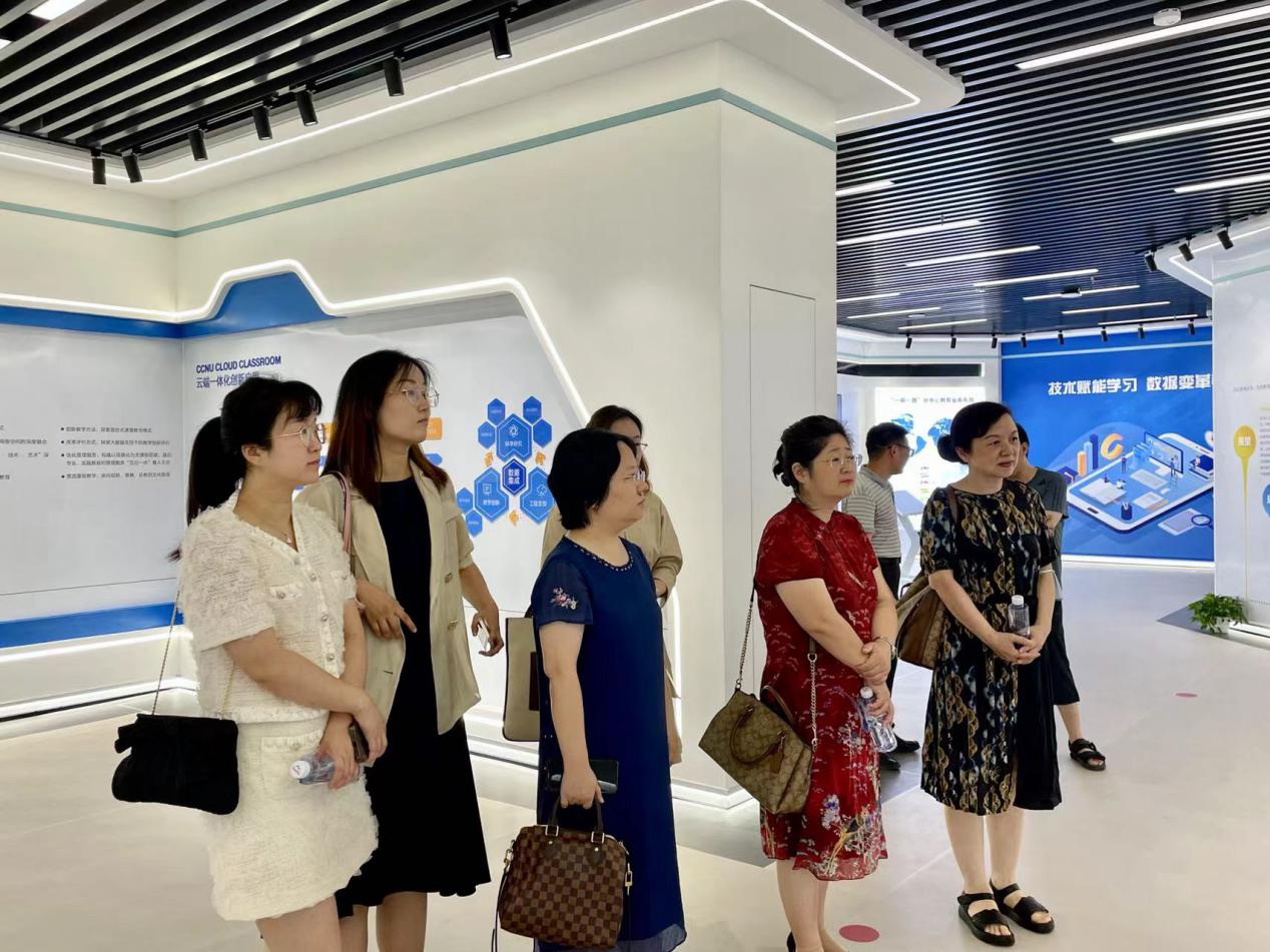 为大力推动新文科建设,促进信息技术与教育教学融合创新发展,拓展教师专业发展与学生创业就业渠道,2023年7月5日,小宝影院 院长兰军、党委副书记邹茸、媒体技术系主任周晓春与副主任李幸、数字教育与心理实验中心陈丹文主任带领各系教师参观访问华中师范大学人工智能教育学部。