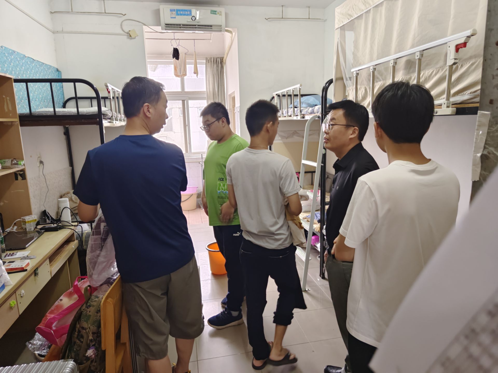 学院党委副书记邹茸与辅导员石兰、梅坤、季国斌、聂思芹一行人分别到北六、南六楼栋进行走访,实地感受同学们的生活环境,并向大家一一询问情况,从哪里来,住得惯不惯。邹书记更是亲切地拉起了同学的手说起了方言,场面温馨和乐。辅导员们再三强调了防诈骗的重要性,提醒大家提高防范意识,保护好财产安全。