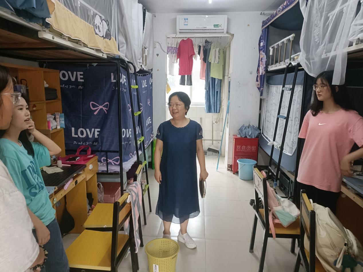 党委副书记邹茸带领各年级辅导员们走访2023级新生宿舍。