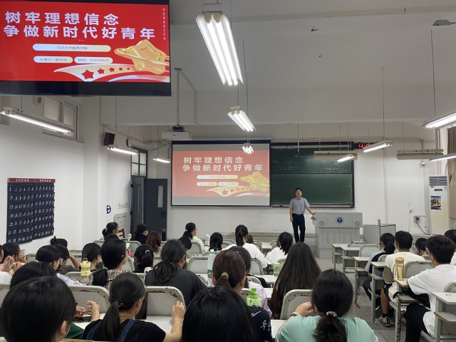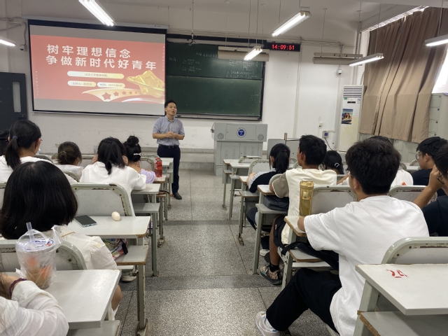 赵书记以“树牢理想信念、争做新时代好青年”为主题,从“百年未有之大变局”的时代背景出发,引导学生认识到青年学子加强思想政治学习的重要性,他着重向同学们介绍了何谓新时代,要求同学们把握历史方位,认识新中国在经济、政治、文化和科技等方面取得的巨大成就。最后,赵书记指出新时代青年生逢其时、重任在肩,应有自己的理想信仰和大局观念,必须时刻牢记“请党放心、强国有我”的青春誓言,以坚韧不拔的意志和无所畏惧的勇气践行使命担当,争做民族复兴的先锋力量。