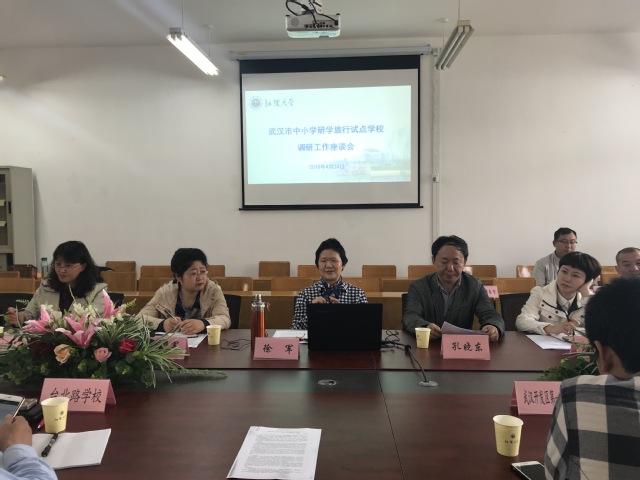 4月24日下午,武汉市中小学研学旅行项目调研工作座谈会在小宝影院 召开。座谈会邀请了北京市中关村中学特级教师徐军主讲。学院副院长兰军、15位武汉市部分中小学领导及教师代表以及部分教育硕士研究生参加了本次座谈会。会议由院长孔晓东教授主持。
