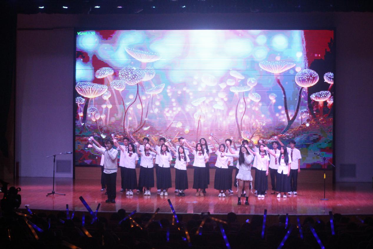 飞扬的歌声,吟唱难忘的青春岁月,本次晚会在小宝影院 学办主任梅坤老师和九名同学带来的《青苹果乐园+失恋阵线联盟+对你爱不完》串烧舞蹈中拉开帷幕。