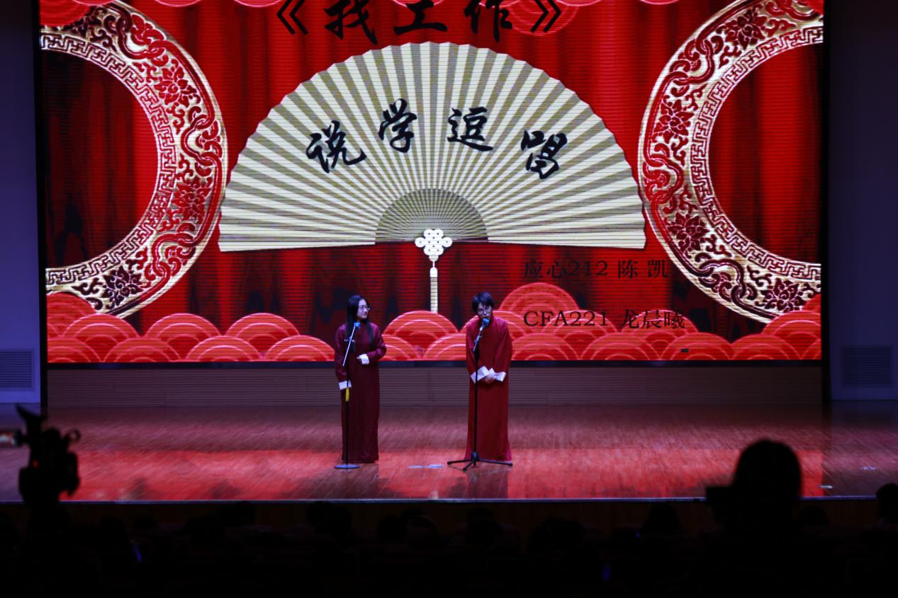 第二篇章“踏歌远航扬新帆”,通过直击心灵的歌舞和相声表演为青年学子拨开迷雾,指明航行方向。歌曲《好想爱这个世界啊》以疗愈人心的曲风、温暖真挚的声线,驱散心中阴霾;相声《找工作》通过诙谐方式展现求职之路,启示同学们思考未来就业之方向;舞蹈《You&Me》和《Love on the Brain》以活力四射的舞步荡漾心中激情;舞蹈《探窗》衣袂翩跹,舞步轻快而典雅,感受古风之美。
