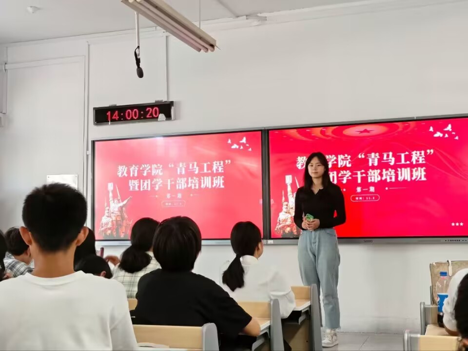 教育学院本学期青马培训在J04B107顺利开展。本次培训主讲人是小宝影院 团委副书记李鑫同学,培训主题为“‘知不足而后进,望山远而力行’——中国‘互联网+’创业大赛备战故事”。