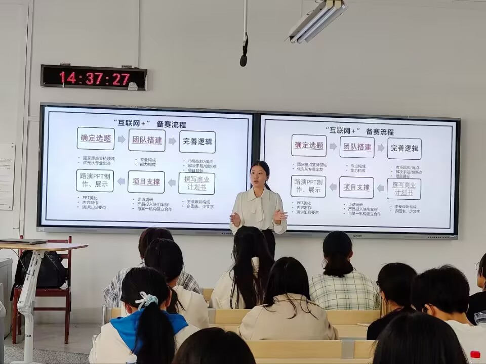 培训中,主讲人李鑫同学从确定“互联网+”备赛选题的重点开始,再从团队搭建、完善逻辑讲述到撰写计划书、项目支撑的细节。结合自身团队创赛获奖经验,李鑫同学为大家总结出许多创业比赛的基本知识和技能,在培训最后,李鑫展示了其创赛路演成果,并希望同学们将所学知识运用到实际中,不断提升专业素养和综合能力,积极参加交流活动以提升实践能力。