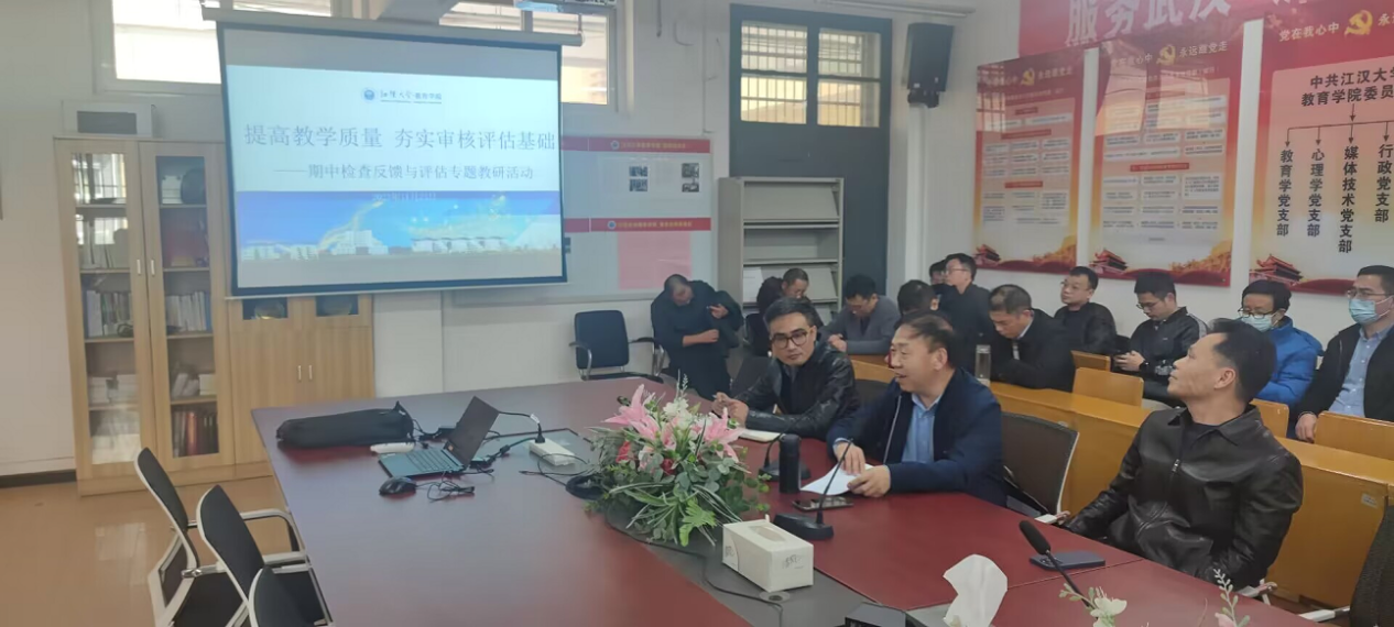 2023年11月23日下午,小宝影院 于J04A413会议室举行了期中检查反馈与评估工作专题院级教研活动,特邀校督导团顿祖纯教授来院做“提高教学质量,夯实审核评估基础”的专题报告,反馈期中质量检查情况,指导迎评工作。活动由副院长许磊主持,学院全体教职员工参与。