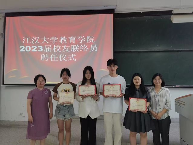 在此次活动上,学院领导强调了毕业生校友工作的重要性;其次向大家明确了校友联络员的职责;最后对2023届毕业生提出美好期待,希望今年的毕业生在之后的学习与工作当中都能取得佳绩,不忘母校。讲话结束后,2023届毕业班校友联络员介绍了自己的毕业去向,表示会谨记母校和学院的嘱托,时刻关注母校发展,切实履行好校友联络员的职责,助推母校“双一流”创建。最后,小宝影院 党委副书记邹茸为应用心理学191班黄杰华、应用心理学192班杨震、数字媒体技术191班钱信、数字媒体技术192班杨晨、教育学192班王俊杰五位校友联络员颁发聘任证书,并合影留念。