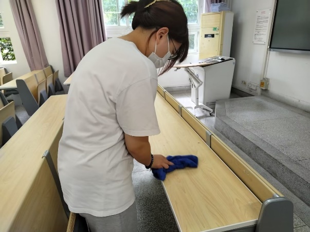 同学们以小组的形式分头行动,有条不紊,相互配合,不推脱,认真负责。清扫垃圾,整理乱堆乱放,擦试教室桌面,清理墙上的涂鸦。每一位同学都为校园的干净美丽贡献出自己的力量。