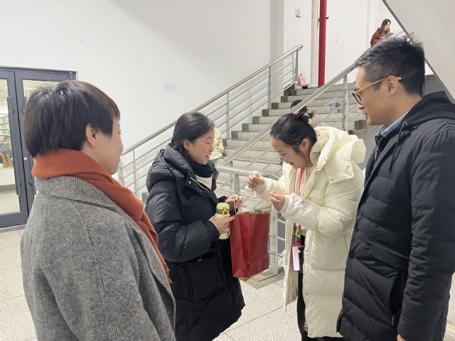 兰军院长向正在积极备战考研的学子们表达了慰问,鼓励大家在考研复习的关键阶段积极准备,坚定信心,取得好成绩。赵友法书记提醒学生,临近考试,注意防寒保暖、劳逸结合,保持良好的心态。邹茸副书记嘱咐大家,坚持到底,学院始终是你们的坚强后盾。许磊副院长祝福大家,一分耕耘,一分收获,努力才能有成果。辅导员老师们精心准备了暖心大礼包,礼包中橙子代表有心想事“橙”,苹果代表“苹”平安安,糖果寓意“苦尽甘来”,还有学院领导、老师们亲笔手写的祝福卡片,希望即将走上考场的学子们下“笔”如有神、“考神附体”,最后,能“逢考必过”、“成功上岸”!