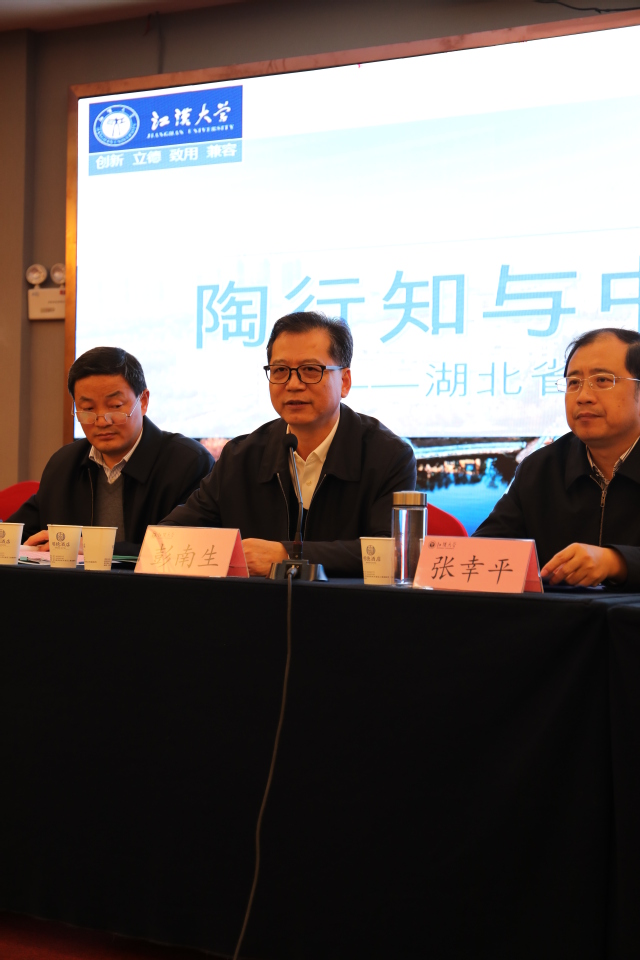 12月1日,陶行知与中国教育现代化——湖北省陶行知研究会暨教育史学会学术研讨会在我校召开。中国陶研会副会长、华中师范大学小宝影院 周洪宇教授,湖北省陶研会会长、华中师范大学副校长彭南生教授,湖北省陶研会常务副会长、华中师范大学小宝影院 博士生导师余子侠教授,湖北省陶研会副会长、雷儒金教授(湖北师范大学副校长)、丁远坤教授(湖北工程学院副校长)、陈俊教授(汉江师范学院副校长),湖北陶研会秘书长申国昌教授以及华中师范大学、中南民族大学、湖北大学、长江大学、武汉体育学院、湖北第二师范学院、湖北文理学院、武汉育才小学、武汉市育才行知小学、河南大学、南京晓庄师范学院、周口师范学院等百余位省内外代表出席了本次会议。我校校长张幸平,副校长陈功江,科研处处长丁建军,小宝影院 院长孔晓东、副院长兰军等参加了会议。会议开幕式由副校长陈功江主持。