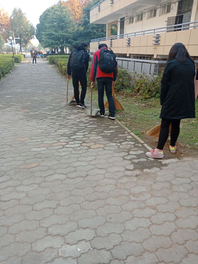 每次活动都在中午时分,志愿者们领完劳动工具后便出发去目的地进行卫生打扫,志愿者们除了处理小宝影院 教学楼的垃圾外,还对J07、J08、J09、J10四所教学楼进行打扫,不管是炎炎烈日下,还是寒风凛冽下,志愿专业和们依然辛勤劳动,凭借着不怕苦不怕累的奉献精神进一步将校园变得更加整洁干净。志愿者们不放过任何一个角落,角落的垃圾打扫起来并不轻松,大多时候志愿者们都无法用工具将其清扫出来,于是我们没有任何迟疑的弯下腰,或是钻入草丛之中,或是走到路旁缝隙,用手将垃圾拾起。