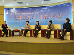 “读书、奉献、成功”这是武汉市妇联主席陈光菊女士对美丽女人的定义;“阳光、大气、素养”这是武汉公交节油王王静女士对美丽女人的解释;“我有自己对美丽的看法”这是孙晓蓉女士对美丽女人的看法;“精致是女人的自尊”这是武汉交通广播电台总监柳莺女士对美丽女人的阐述。
