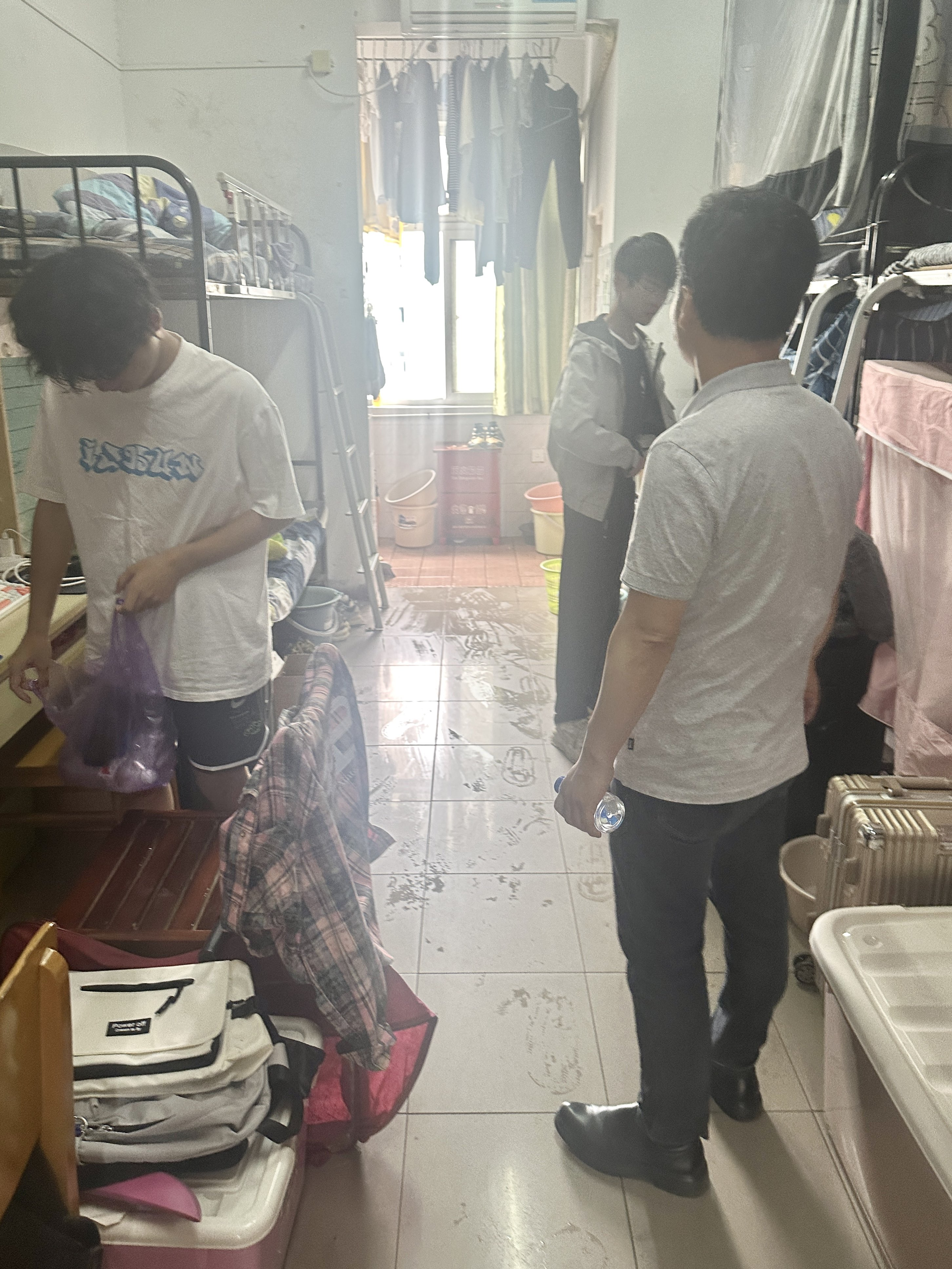 4月28日和29日中午,小宝影院 党委书记赵友发及学工办全体辅导员一同走访学生寝室。