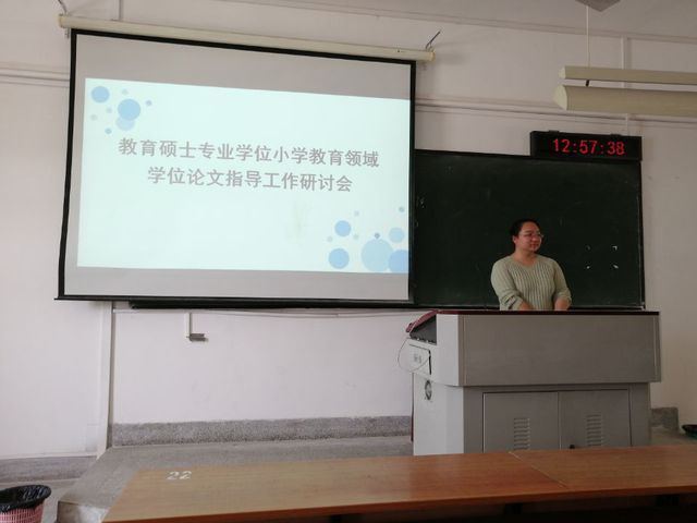首先,教育学系胥秋和严月娟两位老师分析了我国小学教育专业硕士学位论文存在的问题;传达了全国教育专业学位研究生教育指导委员会关于教育硕士专业学位论文的规范要求,并做了解读;分享了我国小学教育领域专业硕士培养的经验。其次,2017级小学教育专业研究生汇报了各自毕业论文的撰写情况。