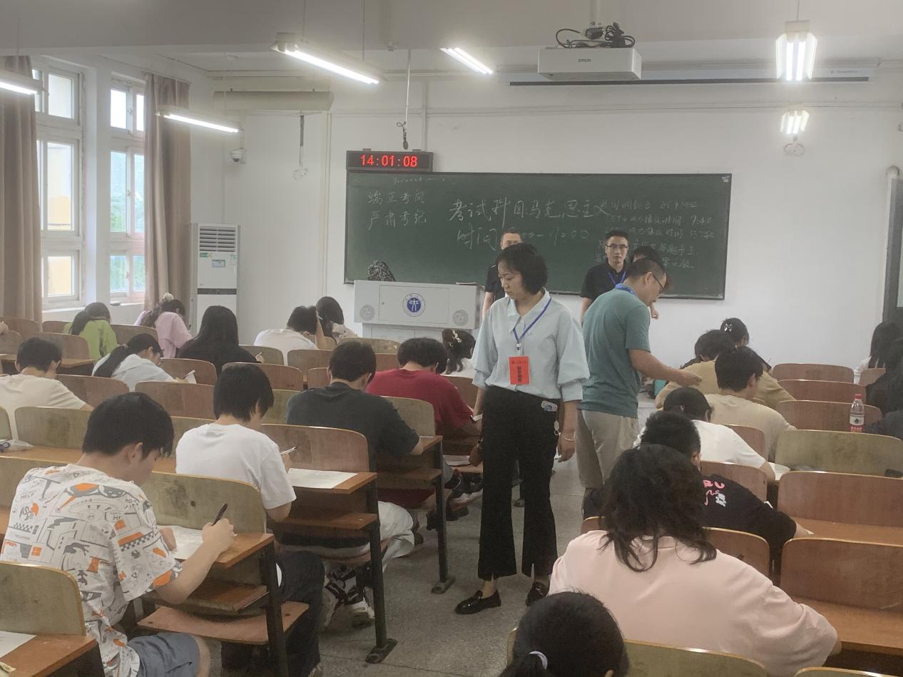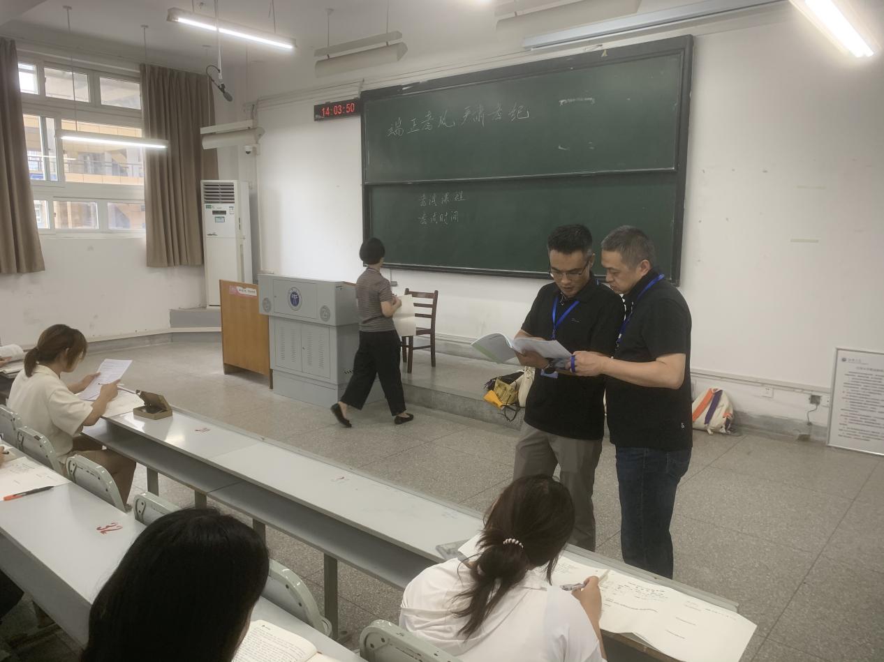 院长兰军、党委副书记(主持党务工作)李莉、教学副院长许磊、党委副书记李珍华等学院领导班子成员对本院当天的所有考场进行了巡视。当天有六门课程进行了考试,共计10个考场,学院领导都一一进入考场,细细询问监考教师考场情况,巡回观察学生考试状态。