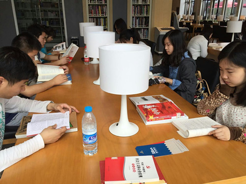 凉夏暖日,湖风清爽,同学们临湖品书,共享彼此的读书心得。活动伊始,各位党员同学在图书馆内探寻自己感兴趣的书籍并进行阅读,随后根据阅读内容进行类型分组,以小组形式进行读书交流讨论。讨论环节遵循自由品评、畅所欲言的原则,组内讨论和组内讨论进行得如火如荼。各位同学各自以独特的表达方式和品读技巧,充分表达自己的读书体验,彼此分享读书心得。最后,同学们一同临湖观赏湖上美景,为本次读书交流会划上了完美句点。