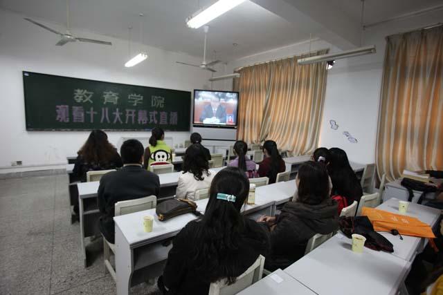 组织师生党员在J10308实验室集中收看党的十八大开幕式盛况。