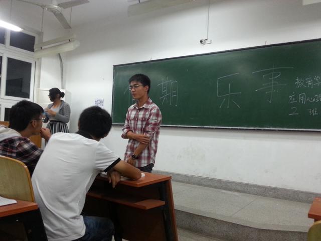 各班班会以生动活泼的形式开展,有的班级以游戏的形式增加同学感情,有的班级以见闻交流的方式分享假期趣事。在应用心理学2班的交流会上,有的同学分享了国庆节旅游感受祖国大好河山的欢乐经历;有的同学交流了假期参加动漫节的学习体会;有的同学讲述了自己外出游玩遭遇小偷的经历,以此警示大家外出提高警惕;有的同学则介绍了自己国庆节兼职的经历……班会活动精彩纷呈,欢快不断。